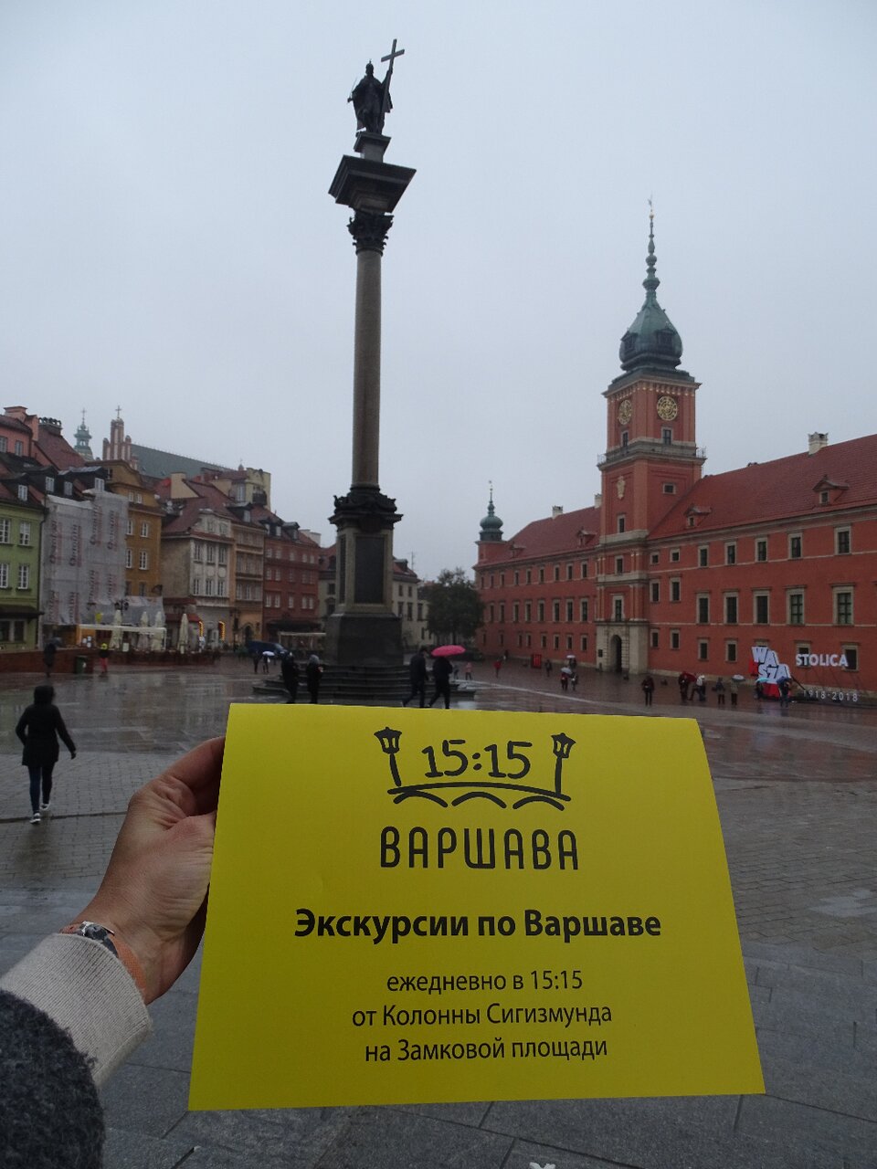 Гиды ждут около колонны Сигизмунда, у них в руках желтый зонт. Экскурсия идет 2 часа.