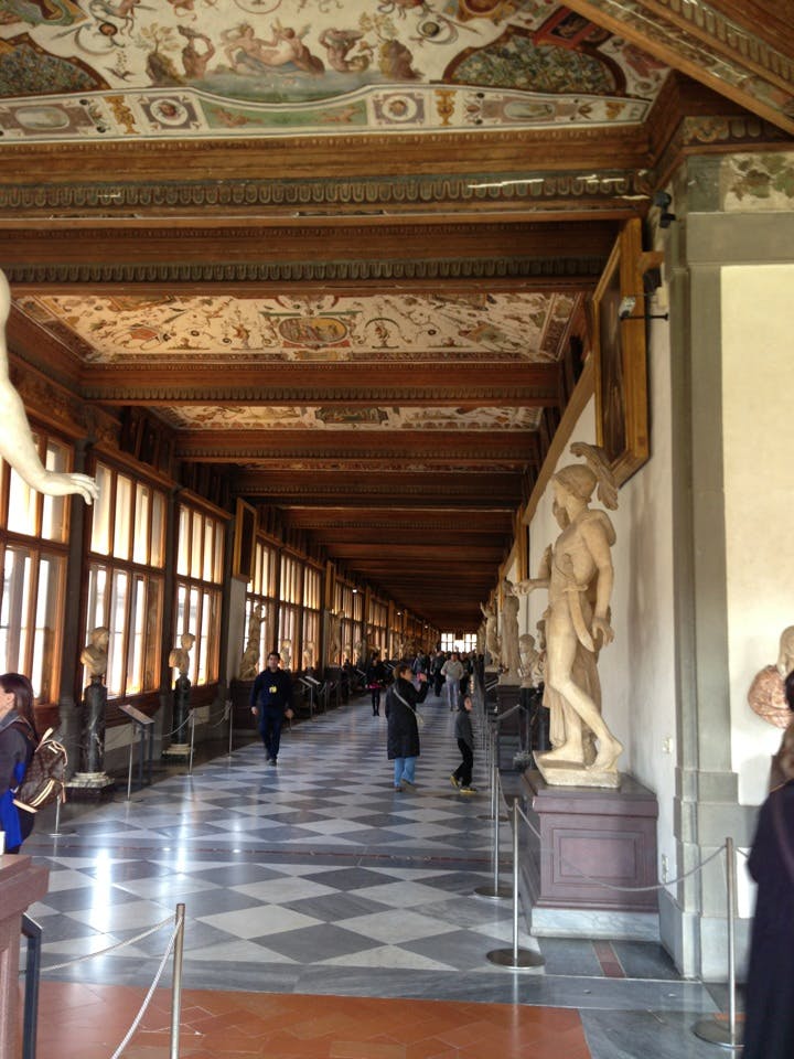 Располагается рядом с рекой Арно. Первые упоминания о галерее датируются еще XIV веком. Если вначале ее могли посещать только знатные жители, то, начиная с XVIII века, она стала доступна для обычных людей. Сейчас это место, где собраны самые ценные произведения искусства не только со всей Италии, но и со всего мира.
