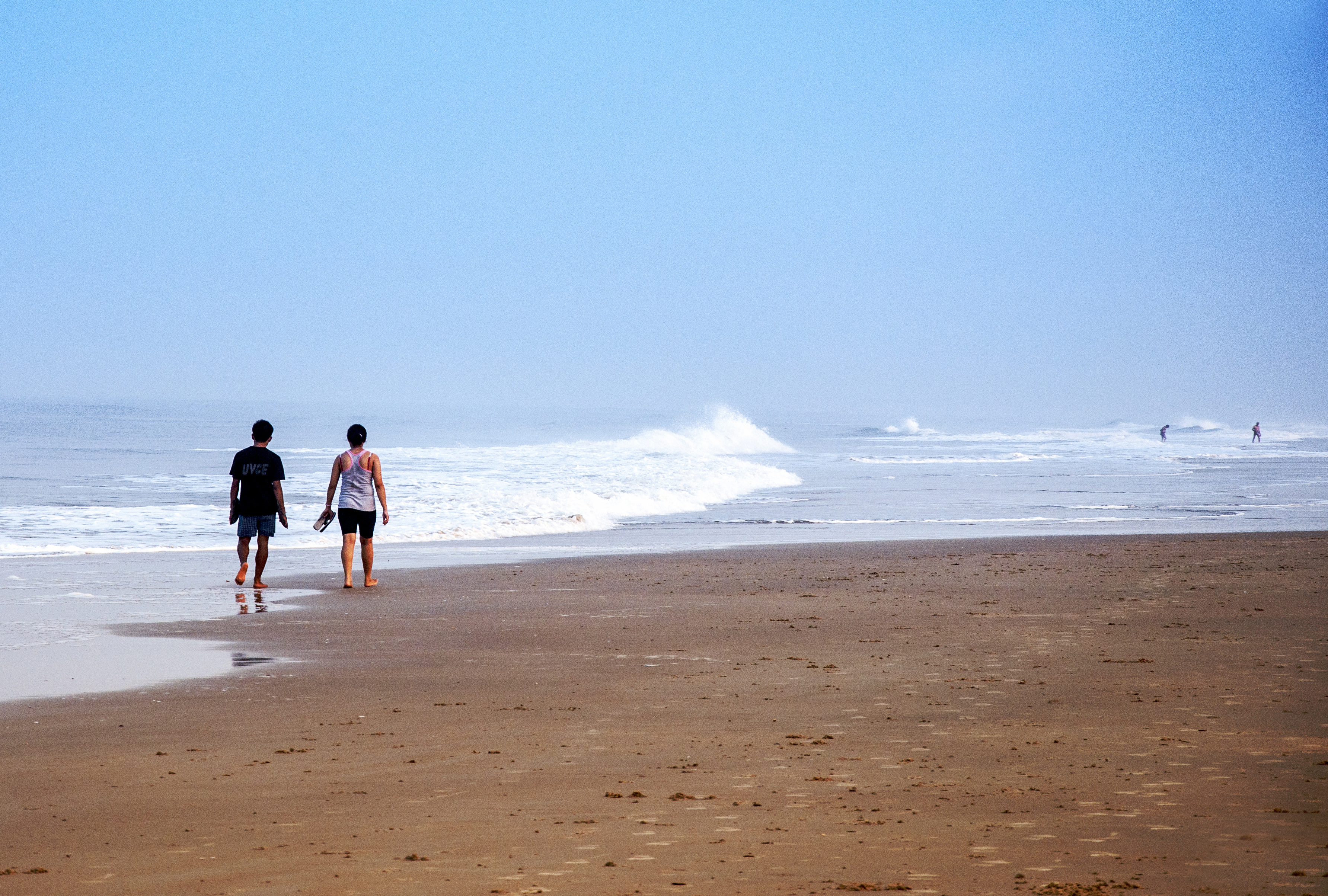 В наше первое утро я просыпаюсь рано и гуляю на солнышке. Он влажный, и, несмотря на ранний час, у меня на лбу выступают капли пота. Сейчас всего 7:30 утра, а пляж уже довольно занят: местные жители охлаждают на мелководье, наслаждаясь целебными свойствами моря в начале дня.