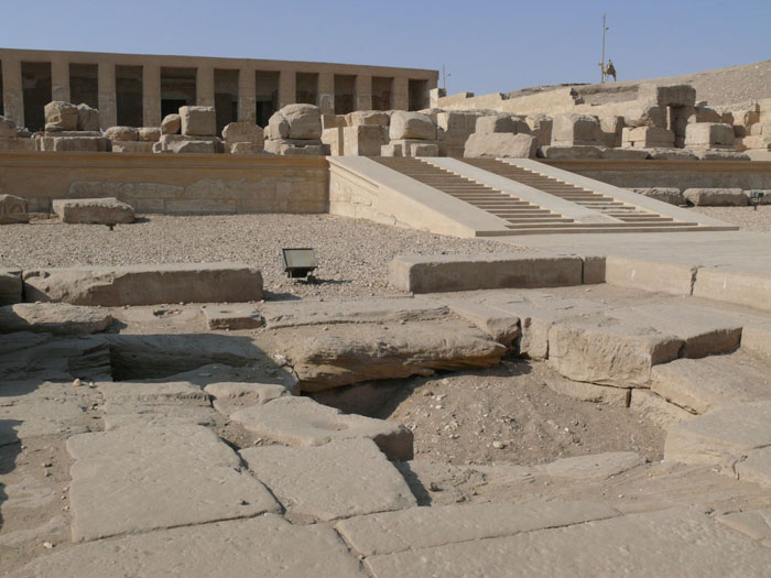 Археологический комплекс Абидоса занимает огромную территорию у края пустыни, по которой разбросаны руины зданий и насыпи. Мало кому из посетителей хватает времени на долгие прогулки, даже если полиция позволяет уходить далеко, однако постройка непосредственно за храмом Сети заслуживает внимания. Когда Флиндерс Питри в начале XX столетия вёл раскопки в Абидосе, он обнаружил многочисленные мастабы, которые принял за царские гробницы.