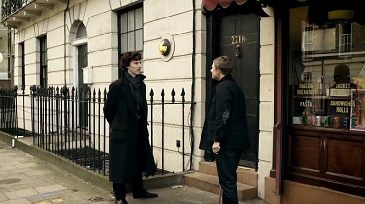 номер дома над дверью (в действительности — название компании 221b).
