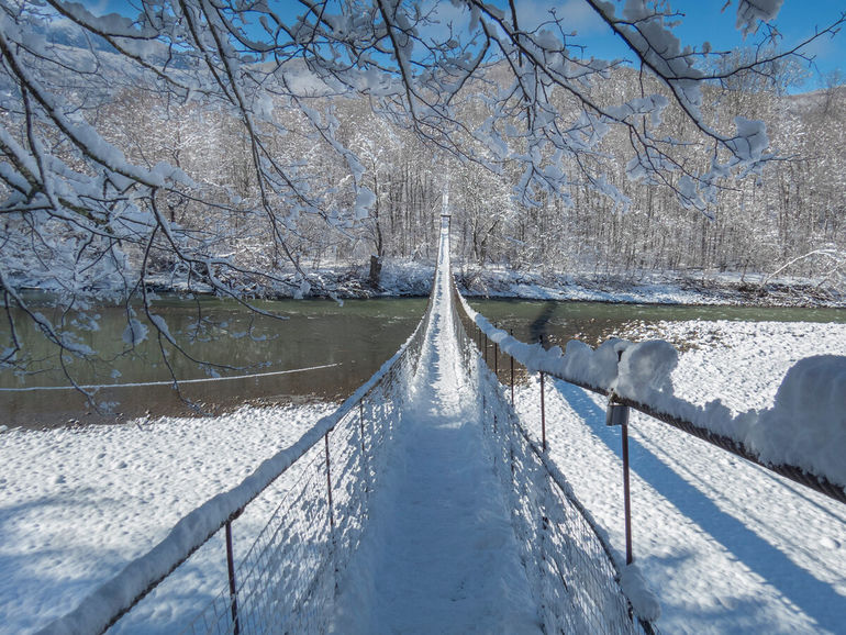 Погода в Лагонаки зимой располагает и к экстремальным прогулкам. Популярностью, например, пользуется зимний рафтинг.