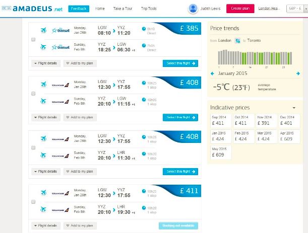 Поиск доступных авиабилетов на Амадеус.