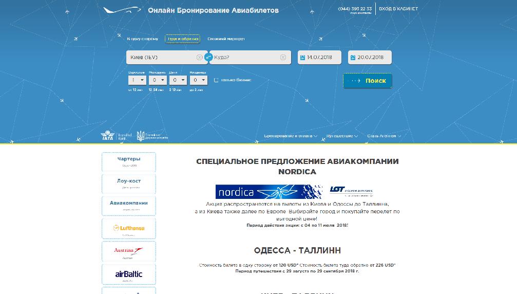 Система бронирования авиакомпанийс интеграцией Amadeus и Galileo GDS