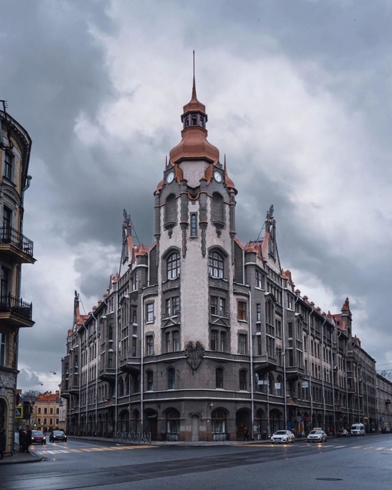 Дом Зингера, он же Дом книги, — это, наверное, самый известный петербургский книжный магазин, а также памятник архитектуры. Ещё одно здание начала прошлого века в стиле модерн в нашей подборке. Дом Зингера прослужил компании Зингер совсем недолго, чуть больше 10 лет, а уже в 1919 году в нём появился книжный магазин, которому суждено было стать центром культурной жизни Петербурга. На верхних этажах когда-то находились редакции сразу нескольких издательств, поэтому литература фактически рождалась там же, где и продавалась. Что касается самого здания, то оно создавалось на американский манер. Строить высотки в центре города запрещалось, поэтому масштаб компании Зингер должен был воплощать огромный стеклянный глобус. Красота этого дома в деталях: огромные витринные окна, богатая лепнина, скульптуры. Если присмотреться, то можно увидеть различные символы швейной индустрии: веретено и швейную машинку. Не забыли и про бога торговли Гермеса, на фасаде здания его жезл с двумя змеями и крылатая шляпа. Интерьер Дома книги не менее богатый: мраморные лестницы, «венецианская штукатурка», позолоченные декоративные элементы. Это не просто магазин, а целый музей.