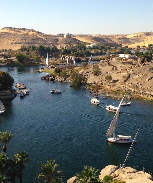Древний пограничный форпост и самый южный город Египта (256 тысяч жителей) расположен в одном из наиболее живописных уголков на Ниле. Близ Асуана пустыня подходит весьма близко к реке, заключая её сверкающую синеву в рамку мягкого янтарного песка и морщинистых выступов гранитной породы. Фелуки под треугольным латинским парусом скользят мимо древних развалин и исполинских скал острова Элефантина. Пальмы и тропические заросли оживляют облик островов и плотин до тех пор, пока ярко-голубое небо не растворяется в плавно наступающих сумерках.