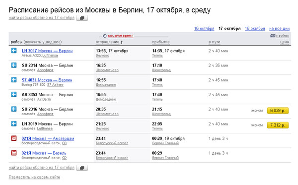 Мы уже указали в строке поиска, что вы вылетаете из Москвы и прилетаете в Берлин.