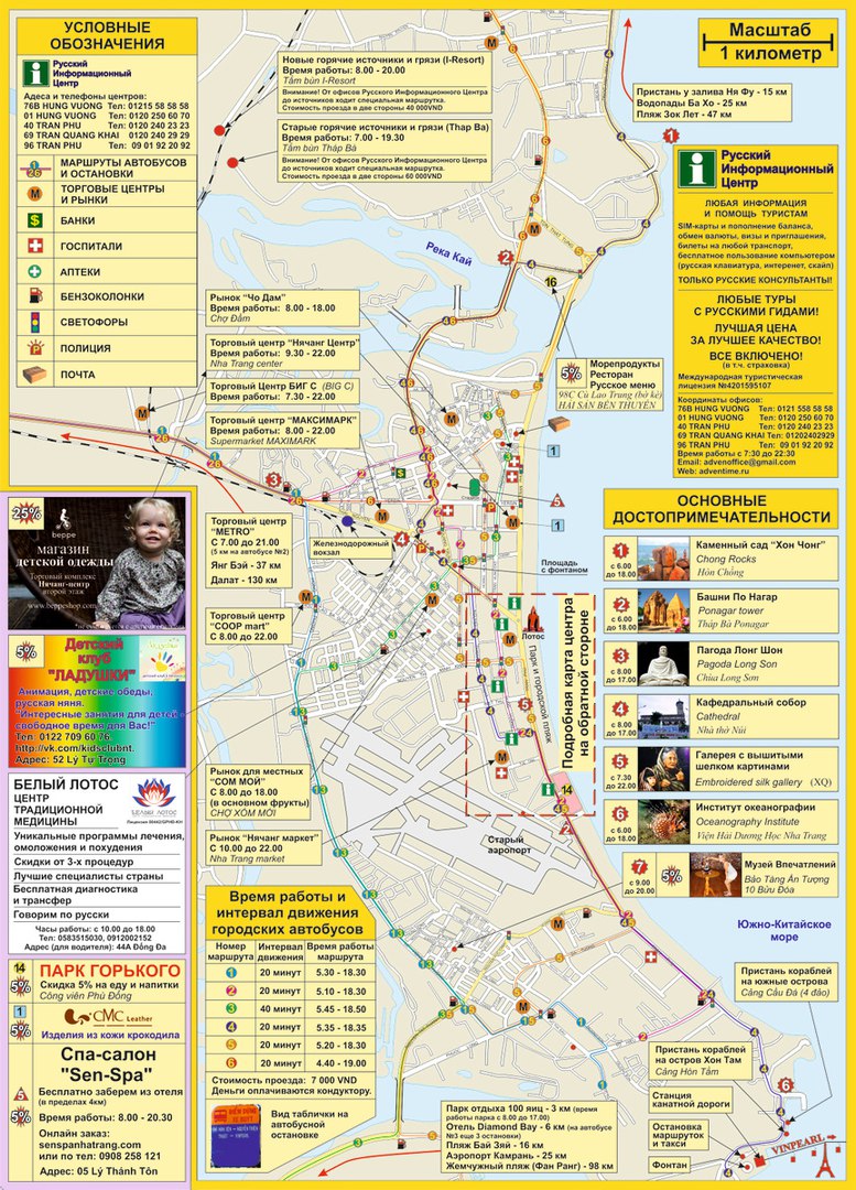 Винперл и Парагон — Порт — Музей Океана — Юг Нячанга — Парк Горького — Центр — Максимарт — Чо Дам — Башни Чамов — Сад Камней — Север Нячанга.