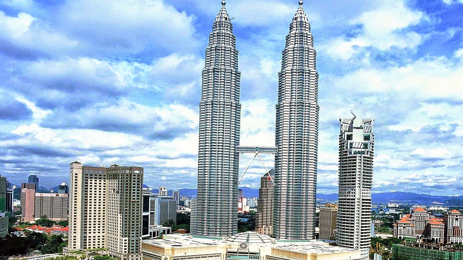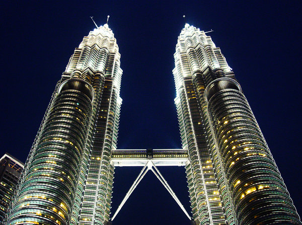 88-этажные здания из стали и стекла, известные как башни-близнецы Петронас (или башни Петронас), построенные в 1996 году, являются символами Малайзии.Эти две башни, призванные символизировать отвагу и прогресс страны, соединены двухэтажным мостом Skybridge между 41 и 42 этажами — самым высоким двухэтажным мостом в мире такого рода — и образуют букву «М», обозначающую Малайзию.