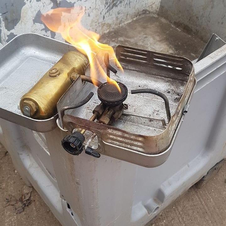 Чтобы бензиновая горелка была готова к эксплуатации, остаётся залить её бензином, а затем нагреть площадь с помощью зажигалки. На протяжении 5—10 секунд горелку лучше тщательно прогревать, после чего она сможет поддерживать оптимальный уровень без вашей помощи.
