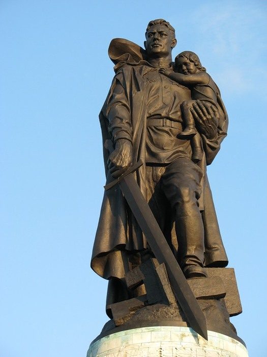 В память о павших солдатах Красной Армии в 1949 году был открыт советский военный мемориал в Трептов-парке в восточной части Берлина – самый крупный за пределами бывшего Советского Союза. В центре комплекса, на кургане с мавзолеем, стоит знаменитая скульптура Евгения Вучетича – попирающий осколки свастики воин-освободитель со спасенной девочкой на руках.