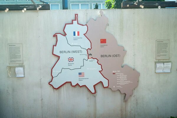 После разгрома нацистов в 1945 году Великобритания, Франция, США и СССР разделили Германию на административные зоны ГДР (Германская Демократическая Республика) и ФРГ (Федеративная Республика Германия). ГДР и территория, названная Восточным Берлином, попали под контроль Советов, а Западным Берлином и ФРГ управляли европейские страны вместе с США.