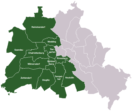 Американские, британские и французские районы стали Западным Берлином, а советские районы — Восточным Берлином.