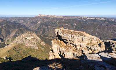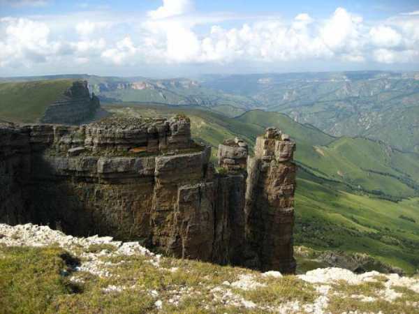 Туда можно добраться по узкой едва заметной тропке, пролегающей среди небольших пещер и причудливых скальных обнажений. Уже через два часа, стоя на вершине этого плато, которое кстати, несмотря на название, еще выше чем Большой Бермамыт, мы наслаждались панорамой самого настоящего Кавказского Гран Каньона. Причем порода находилась в постоянном движении. Буквально на наших глазах с ее краев отваливались гигантские каменные глыбы и с раскатистым грохотом срывались вниз.