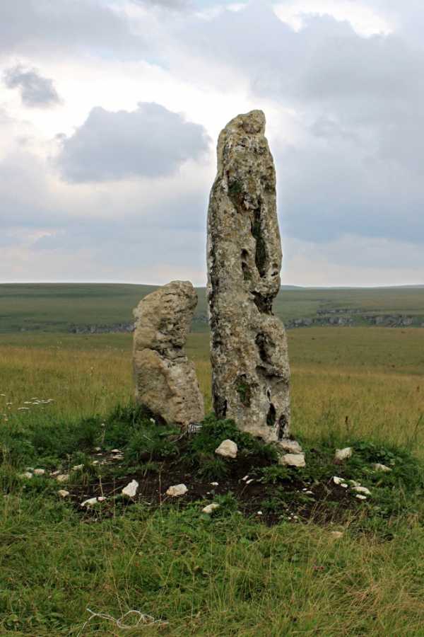 Вот по этой грунтовке нужно проследовать на юг ещё примерно километров 17-18, до ориентира – двух менгиров возле дороги. Кстати, мне не раз доводилось слышать, что менгиры эти остались ещё со времён Великого Шёлкового Пути… Но никаких археологических доказательств этому нет, так что не факт.