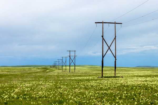 Ну, а дальше дорога начнёт заметно уходить влево, а прямо по курсу на плоскогорье покажется линия электропередач.