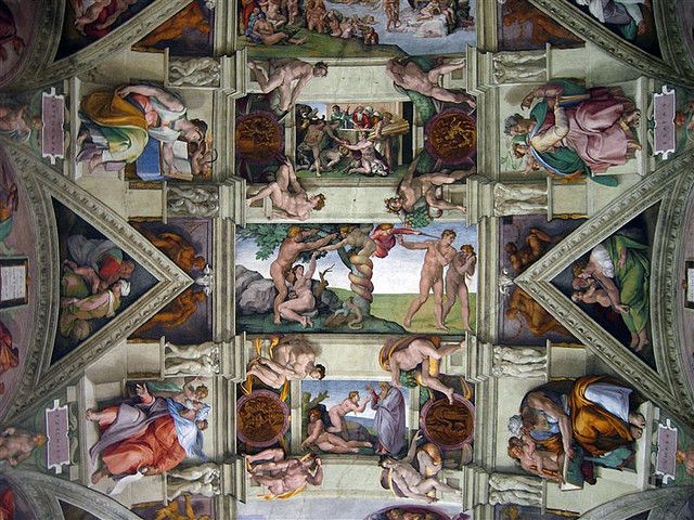 - Посмотрите на работу Микеланджело: Самая выдающаяся фреска здесь — потолок Сикстинской капеллы и «Страшный суд», созданный Микеланджело.