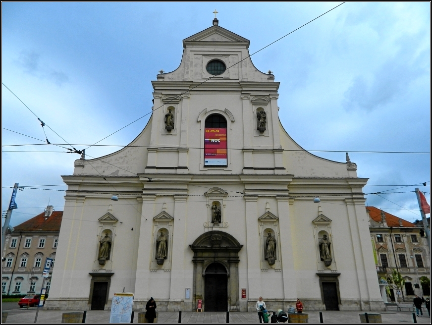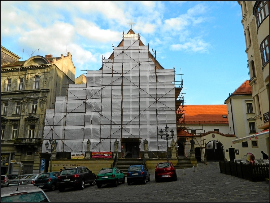 Монастырский костёл Обретения Святого Креста и шесть скульптур главных капуцинских святыхЭто одна из лучших достопримечательностей Брно. В светлом здании, выстроенном без каких-либо излишеств, хранятся мощи 16-ти монахов. Благодаря особенной системе воздушной циркуляции их тела в мумифицированном виде хорошо сохранились и доступны к просмотру, т.к. они, согласно обряду капуцинов, похоронены не в гробах. Зрелище немного жутковато, поэтому перед входом в склеп стоит еще раз подумать, насколько важно для вас видеть его содержимое.