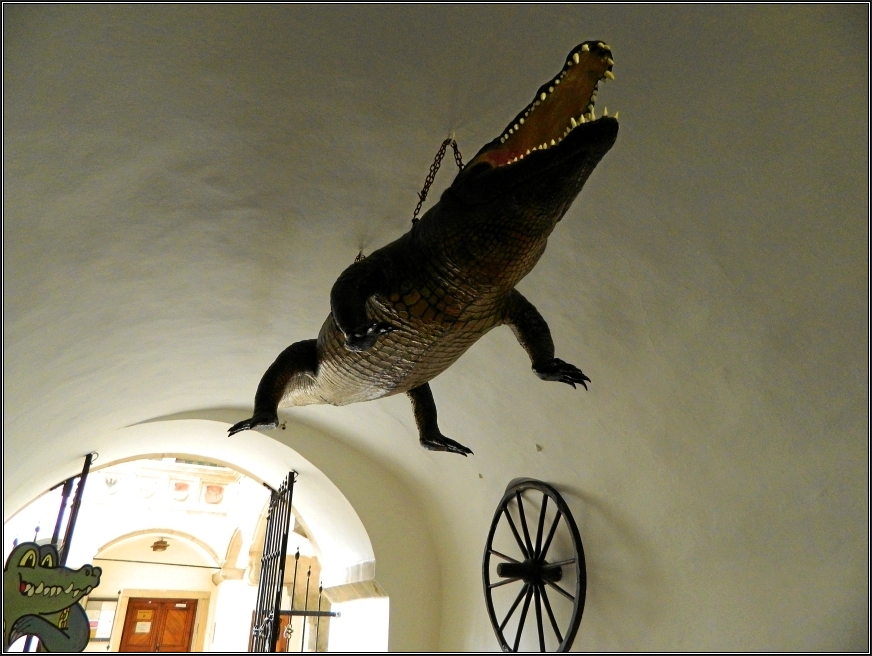 Главными достопримечательностями этого места являются два неофициальных талисмана города – свисающее с потолка арки чучело крокодила, которого брненцы ласково и уважительно называют Драконом, и деревянное колесо телеги. И дракон, и колесо давно стали предметами множества легенд, которые с удовольствием вам расскажет любой житель Брно. При желании вы также можете подняться на башню Ратуши.