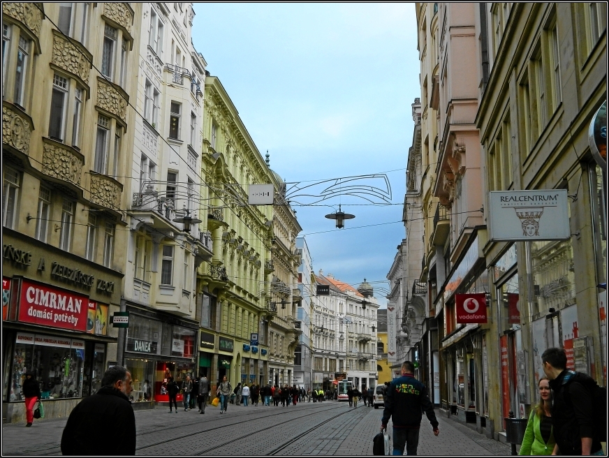 Главная улица Брно — Masarykova — идет от железнодорожного вокзала к площади Свободы.