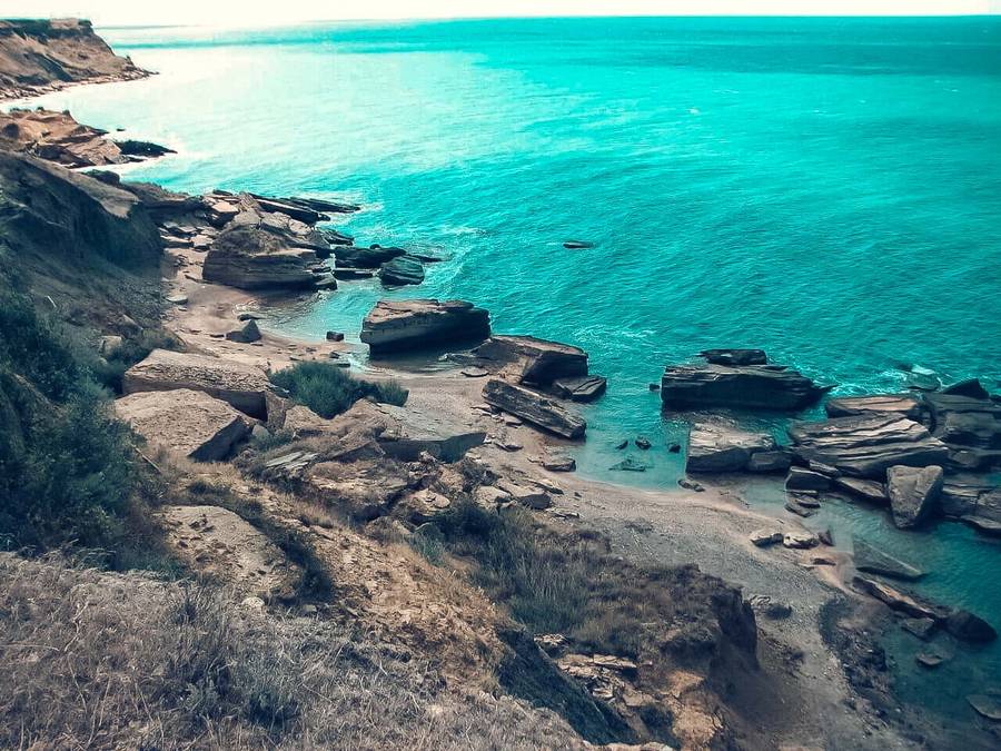 Это невысокий (15–30 м), плоский, с обрывистыми берегами участок Керченского побережья. Крупные плиты ракушечника, сцементированные естественным образом в прочную породу, успешно противостоят размыву морских волн.
