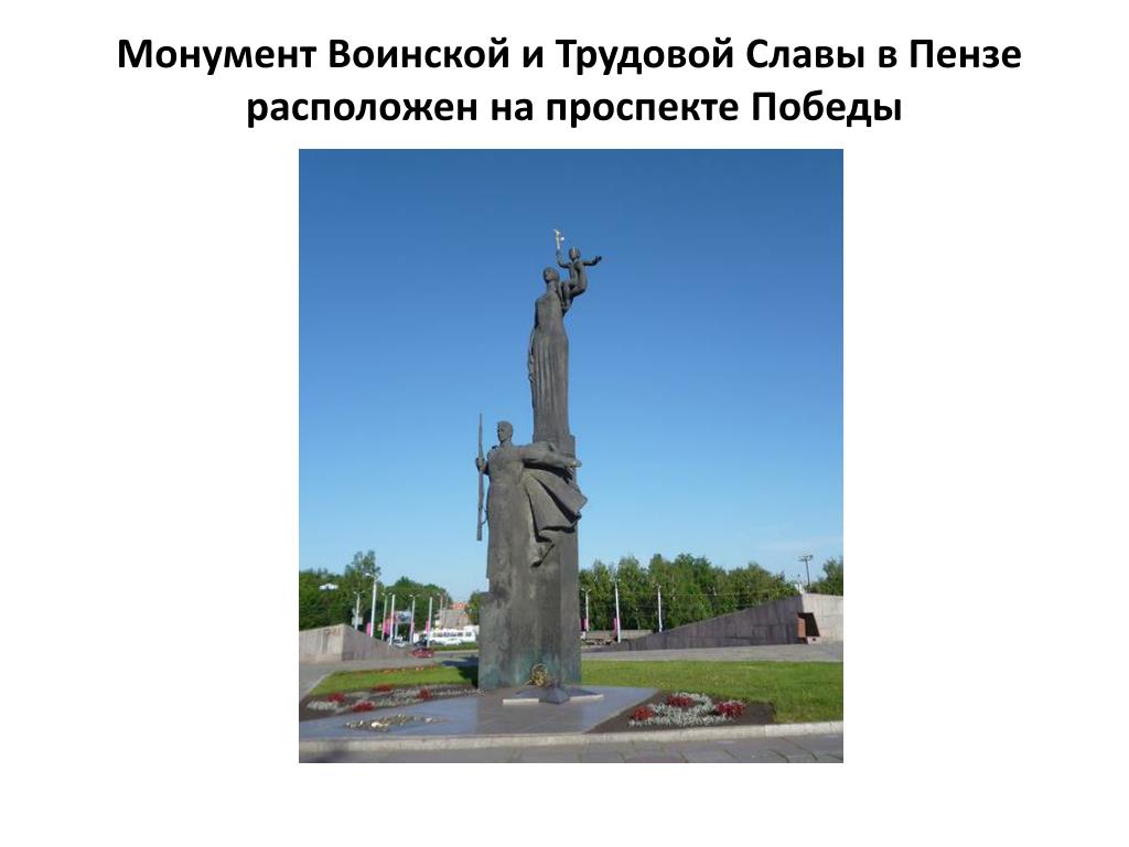 Центральной улицей Пензы и визитной карточкой города является пешеходная Московская улица, которая дает представление об архитектуре старой Пензы. Здесь находится Мясной пассаж (1895), украшенный шестью красивыми кирпичными шатрами и фигурной кирпичной кладкой, здание филармонии и областной драматический театр им. А.Луначарского. В сквере на Московской улице можно увидеть одну из главных достопримечательностей Пензы — светомузыкальный фонтан, а также часы с кукушкой. Московская улица в Пензе — своего рода местный «Арбат», одна из старейших улиц в городе, она появилась почти одновременно с возникновением города. На кремлевском холме Пензы, недалеко от Троицкого женского монастыря (1692), обустроена обзорная площадка с прекрасным видом на город и установлен памятник Первопоселенцу — один из наиболее известных символов города, напротив которого сохранились остатки крепостного вала XVII в. К узнаваемым достопримечательностям Пензы относится один из самых красивых монументов города — Мемориальный комплекс воинской и трудовой Славы (памятник Победы), а также памятный обелиск «Росток» на набережной реки Суры.