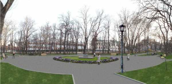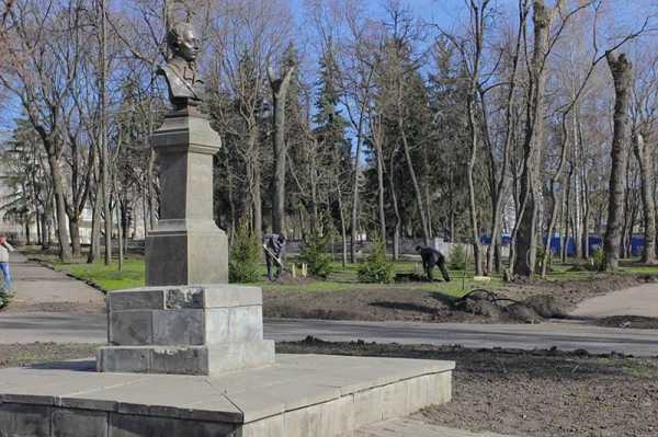 Император, побывав на месте основания города, вместо крепости, увидел руины, заросшие бурьяном, был очень недоволен, предложил создать сквер. Предложение монаршей особы градоначальники спешно воплотили в жизнь, украсив центральную аллею бюстом поэта.