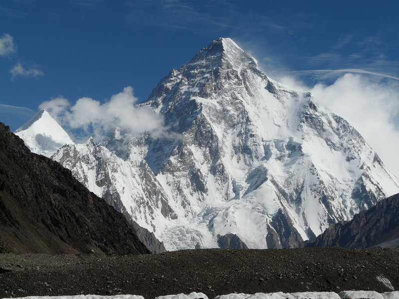 Гора К2, или как ее еще называют Чогори, вторая по высоте вершина на нашей планете, ее высота (8611 м).