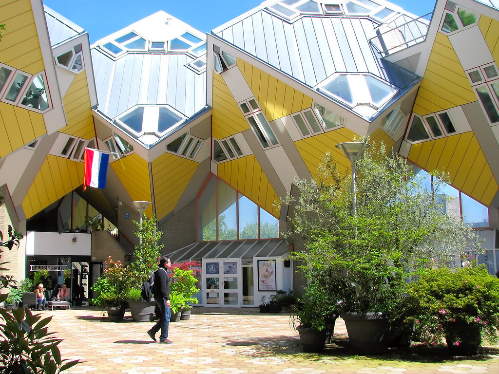 Один из способов описать город Роттердам – это его архитектура. Эти кубические дома привлекут ваше внимание, когда вы посетите Роттердам. Кубические дома, спроектированные Питером Бломом в семидесятых годах, должны были представлять собой лес, где каждый дом представляет собой дерево. Кончики домов изображают сосны.