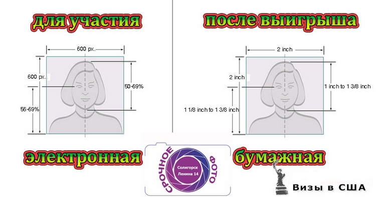 Просьба фотографироваться без очков и головных уборов. Более подрoбную информацию можно найти на сайте https://travel.state.gov/content/visas/en/general/photos/photo-page.html.(Пять фотографий потребуются дополнительно для медицинского осмотра).