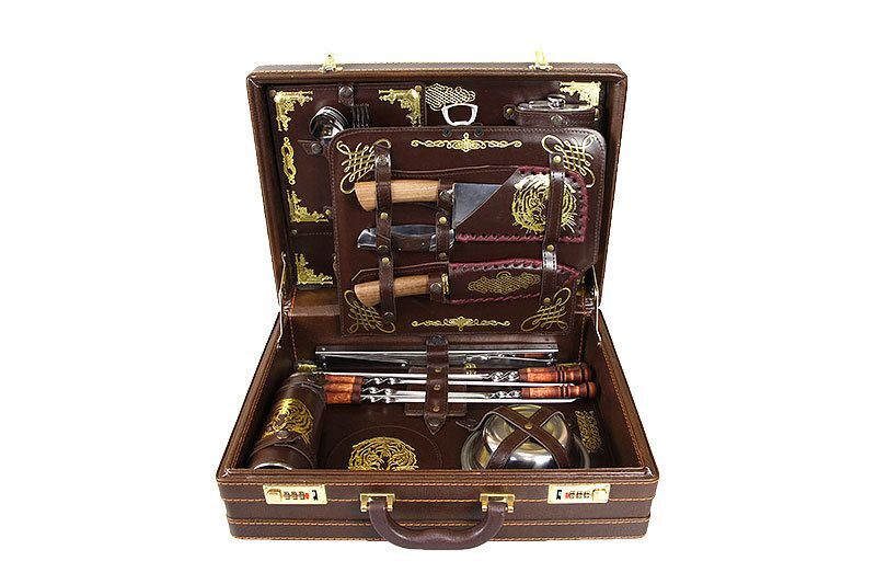 Он вмещает 2 бутылки вина или шампанского, а также включает в себя две изолированные чашки из нержавеющей стали.