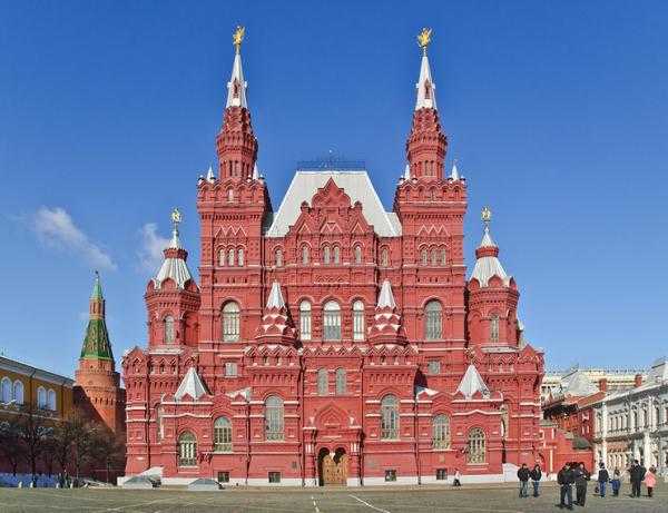Государственный исторический музей. Находится достопримечательность на Красной площади. Территория музейного комплекса огромна, а в запасниках хранятся коллекции исторических и культурных ценностей, охватывающих события с древнейших времени по сей день. Строительство и наполнение экспозиции происходило с 1872 года по желанию Александра II. С 1990 года исторический музей вместе с ансамблем Кремля внесен в список всемирного наследия ЮНЕСКО. -