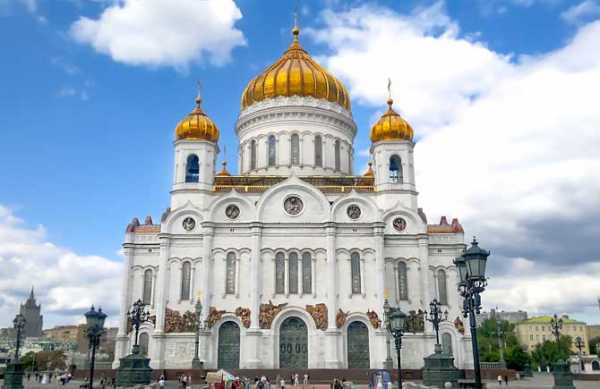 Храм Христа Спасителя. Именно здесь проводит службы Патриарх Московский. Возведен храм в ознаменование победы в Отечественной войне 1812 года. Проект принадлежит известному архитектору Константину Тону. Строительство продолжалось около 40 лет. В советское время храм взорвали, чтобы построить Дворец советов. Еще позднее тут располагался бассейн. Заново отстроить собор удалось лишь в 1994-1997 годы. Современный облик святыни максимально приближен к первоначальному. -