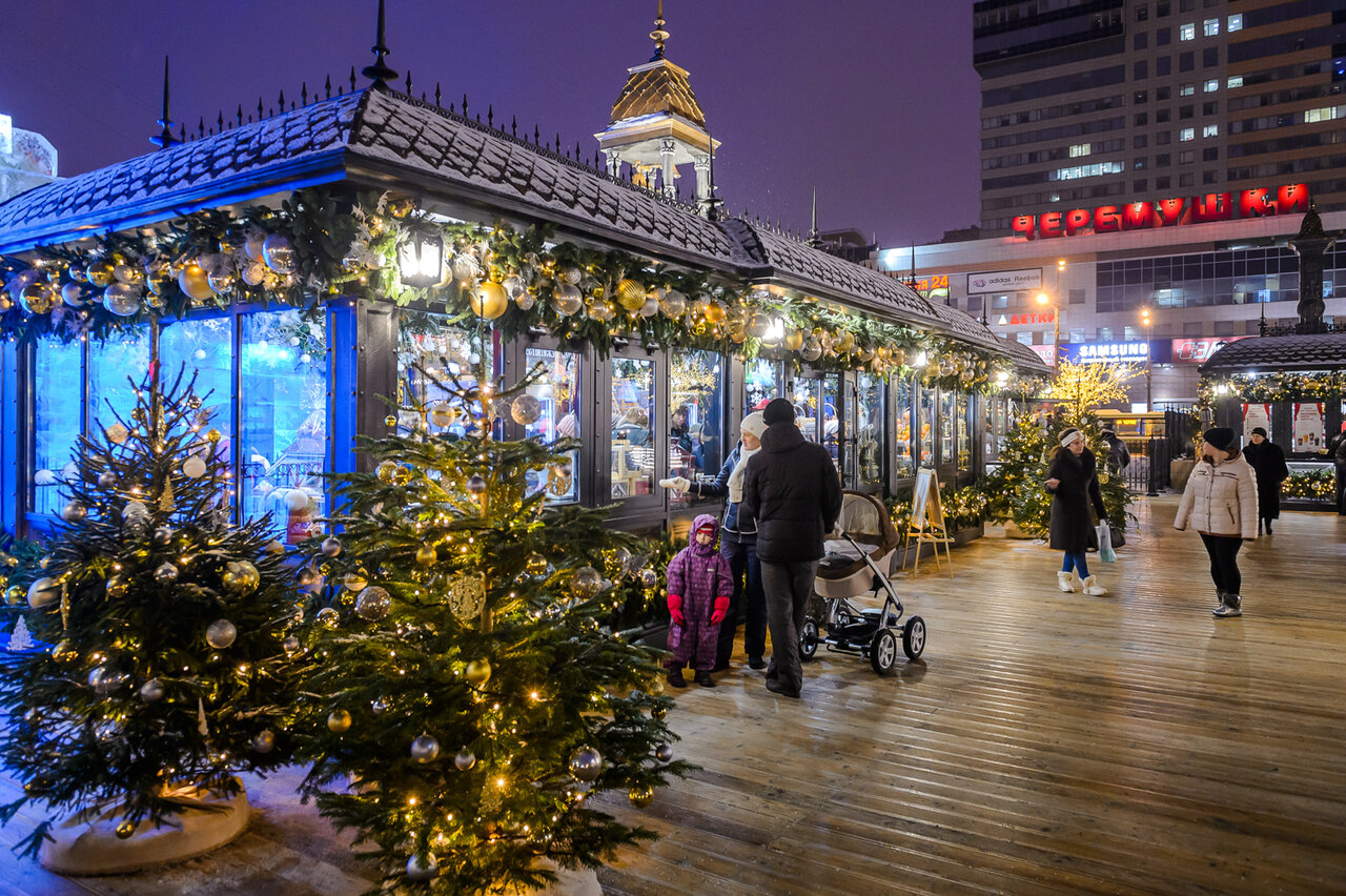 Манежная площадь покрыта волшебным лесом из более чем 500 новогодних елок, красивой карусели и идеальной сцены для театральных представлений.Прогуливаясь по площади, обязательно посетите праздничный рынок с множеством сувениров, подарков, еды и напитков, вы можете отвести детей на какой-нибудь мастер-класс, а затем опробовать самую высокую и длинную ледяную горку Москвы.