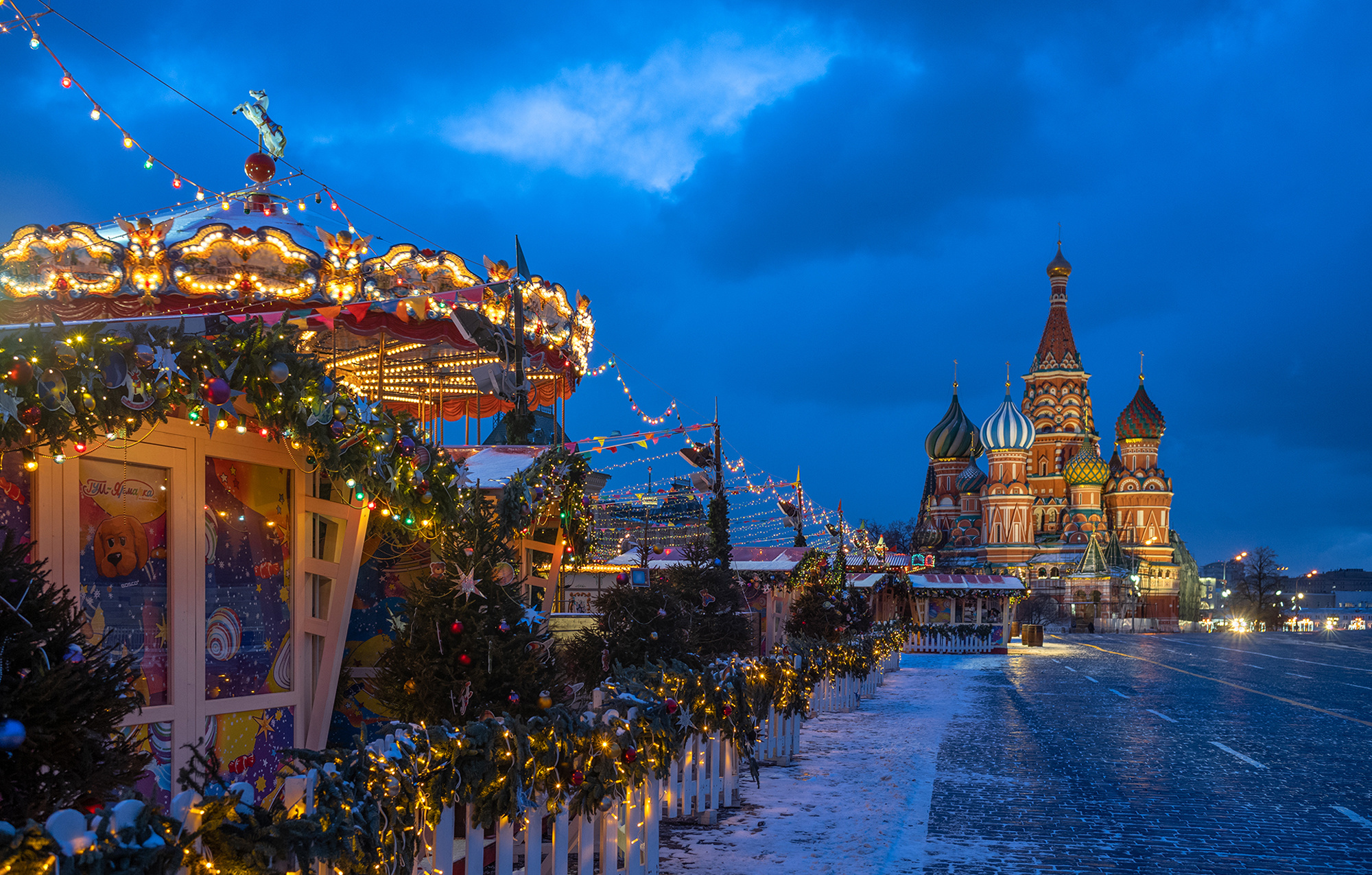 - Рождественская ярмарка на Красной площади: обычно с 10 декабря по 28 февраля, Москва, Красная площадь возле ГУМа