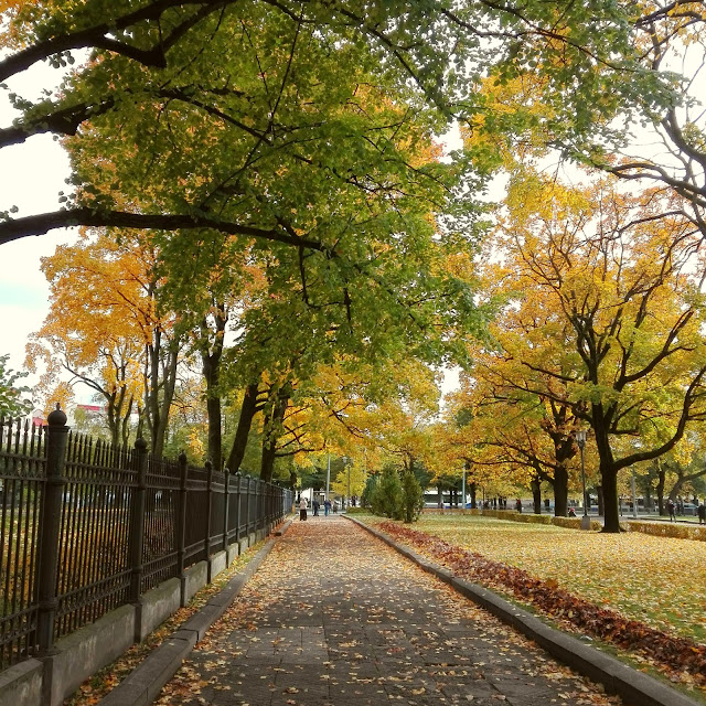 Это была великолепная прогулка по улицам, усаженным ярко-желтыми листьями. Перебравшись через Даугаву в город, мы продолжили бродить, и осеннее настроение стало еще сильнее. Латвия прекрасна в это время года!
