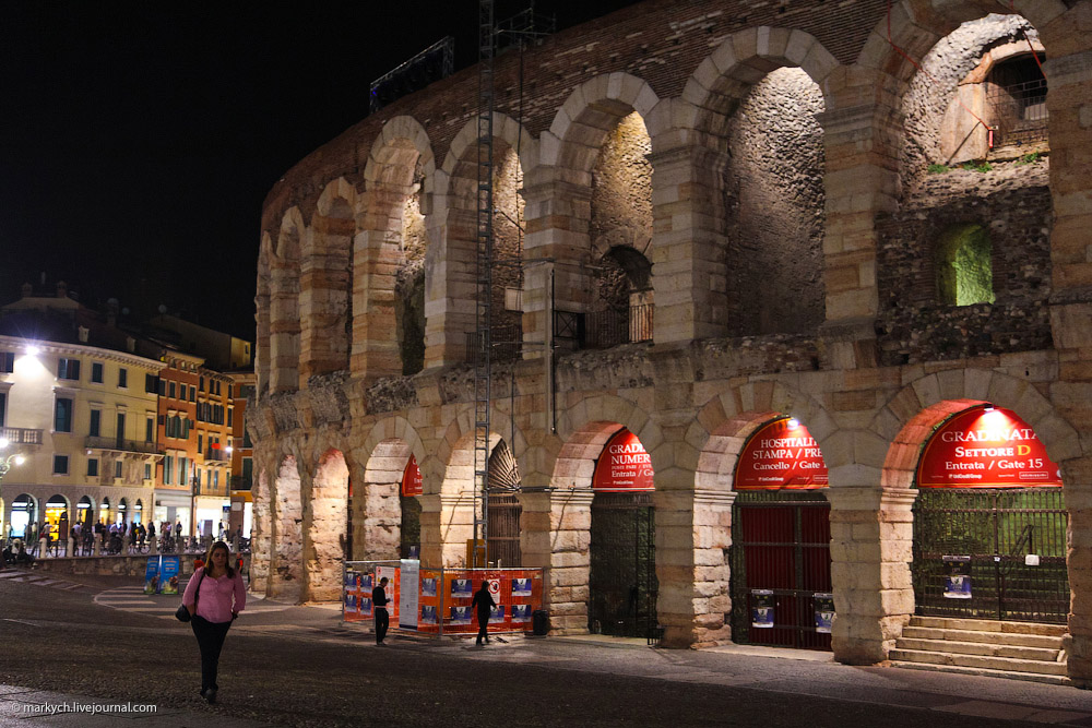 6. Быстро двигайтесь к Арена ди ВеронаВерно! Колизей в Риме — не единственный амфитеатр в Италии! Чего-чего?! Именно такие сооружения очаровывают меня в Вероне. Арена ди Верона до сих пор является местом проведения масштабных представлений и является одним из наиболее хорошо сохранившихся сооружений в своем роде. После Римского Колизея и амфитеатра Капуи это третий по величине амфитеатр в Италии. Он был построен в первой половине I века нашей эры и принимал живые концерты The Who, Уитни Хьюстон, Пола Маккартни, Kiss и… One Direction.
