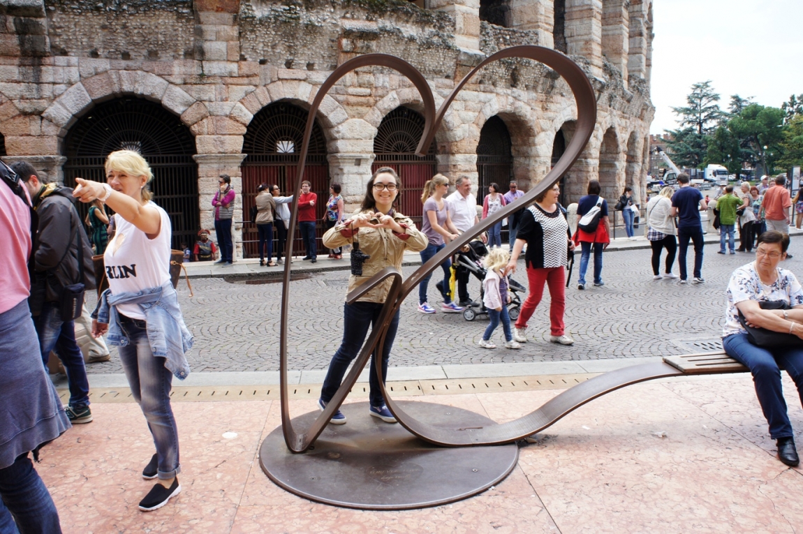 В знаменитый дом можно и внутрь зайти, на балконе известном постоять, но основным местом посещения является внутренний дворик со статуей юной влюблённой. И вот здесь, Господи прости, основная задача — пощупать Джульетту на грудь. Чтоб было счастье в личной жизни, как говорят. Идея, конечно, бредовее некуда, да и зрелище, скажу я вам, соответственное. Взрослые люди стоят в очереди, чтобы статую за интимное место потрогать и в таком виде ещё и сфотографироваться. Может я преувеличиваю, но, как по мне, так это яркий пример безвкусицы и людской тупости. Хотя, хватают же нью-йоркского быка за я*ца, а тут даже всё приличнее, как будто.