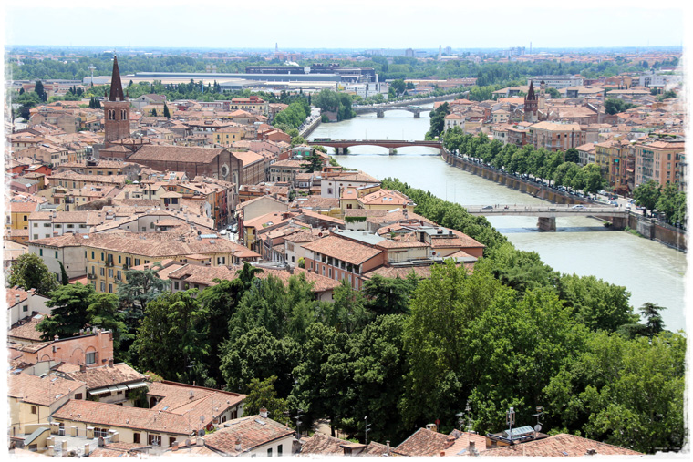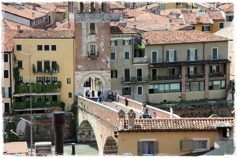 Дальше мимо арок Скалигеров, всяких разных базилик (которые у нас, честно говоря, интереса не вызвали), переходим по мосту и движемся в сторону смотровой площадки у Castel San Pietro.
