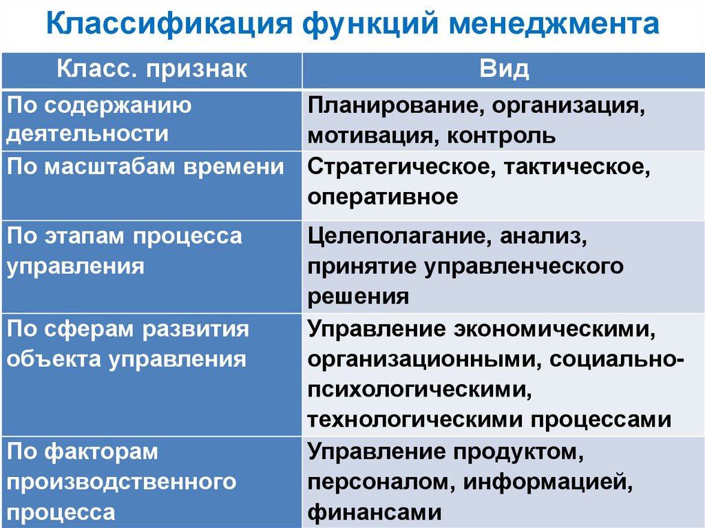 Все менеджеры на всех уровнях каждой организации выполняют эти функции, но количество времени, которое менеджер тратит на каждую из них, зависит как от уровня управления, так и от конкретной организации.