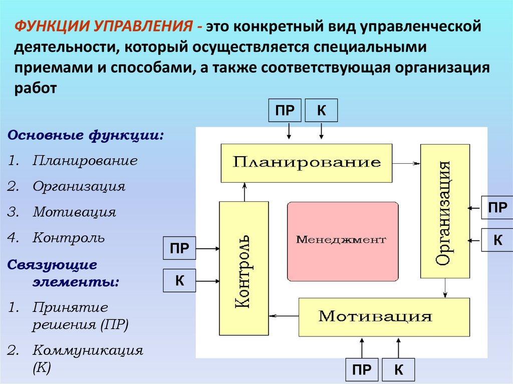 В связи с этим управление призвано планировать, организовывать, координировать, стимулировать, контролировать деятельность предприятий и организаций.