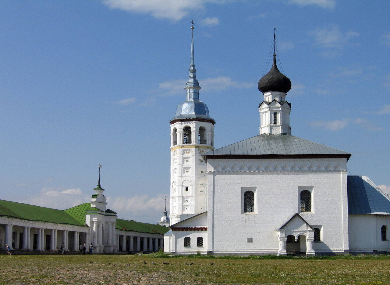 Классическая картина Суздаля: белоснежная красота монастырских стен в окружении зеленых лугов на берегу лениво извилистой реки. Внутри — клумбы из ярких цветов, за которыми ухаживают монахини, которые живут в деревянных коттеджах, оставшихся от деревенской гостиницы, построенной здесь, когда монастырь был закрыт после революции (он был возрожден в 1992 году). Основанный в 1364 году, этот монастырь изначально был местом ссылки нежеланных жен царей.