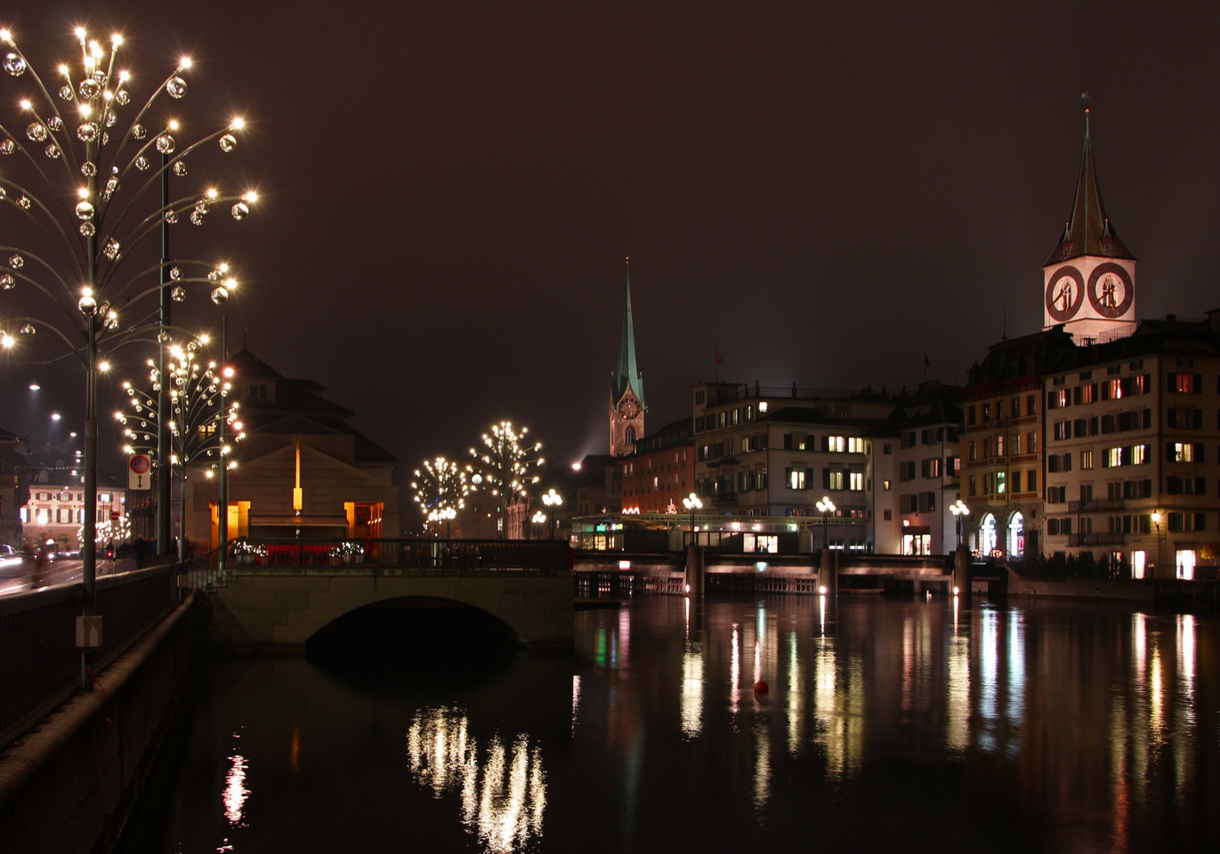 Все рождественские мероприятия в Цюрихе начинаются, когда Банхофштрассе внезапно освещается тысячами огней. Одна из известных торговых улиц Европы зимой покрывается снегом и становится похожей на сказку. Поющие ёлки, гирлянды, Санта-Клаусы, ярко оформленные витрины — кажется, что праздничное настроение всего Цюриха сосредоточено именно на Банхофштрассе. Горожане обходят местные магазины в поисках подарков и просто наслаждаются красотой иллюминации. Кстати, световые композиции почти ежедневно меняются, и кульминацией становятся самые яркие эффекты, буквально «заливающие» улицу в рождественскую ночь.