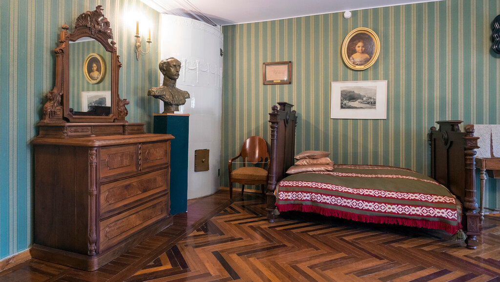 Спальня поэта. Интерьер этой комнаты был привезен из Царского Села, где прошли последние месяцы жизни Федора Тютчева.