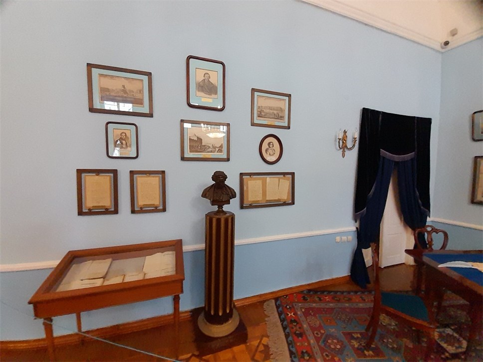 «Кабинет двух поэтов»: письменный стол Федора Тютчева с личными вещами, привезенный его сыном из Царского Села. Здесь же стоит письменный стол Боратынского. Дверь из кабинета ведет в Большую гостиную, а затем — в Зеленую гостиную.