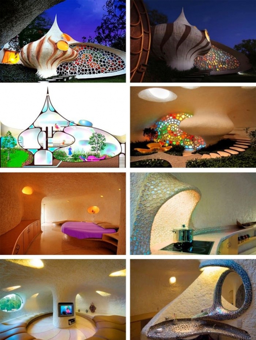 Днем солнечные лучи проходят внутрь через овальные световые люки, обеспечивая каждое помещение естественным освещением. Разноцветные витражи создают атмосферу волшебства, перемещают в другую реальность, защищают от посторонних взглядов: владельцы такого дома, как и морские обитатели красивых раковин, не любят повышенного интереса к своим персонам.