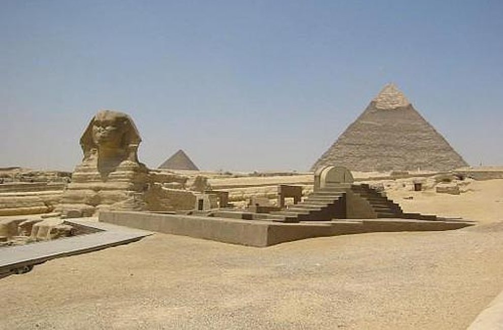 Статуя гигантского льва с человеческим лицом 73 м. в длину и 21 м. в высоту. Внутри статуя является пустотелой. Подобные сооружения служили для казней и жертвоприношений, поэтому египтяне называют Большого Сфинкса «царем/отцом ужаса». Еще он символизировал возмездие и катастрофу, которое согласно древним верованиям, должна прийти с неба.