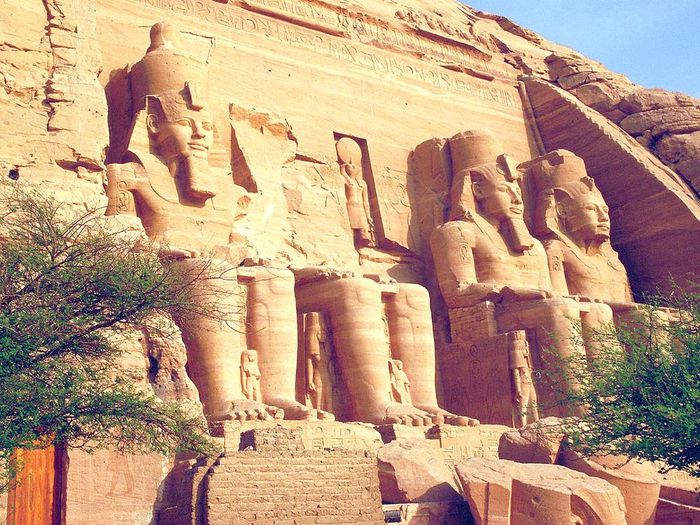 Абу-Симбел – это скала рядом с Нилом. Скала Абу-Симбел примечательна тем, что в ней высечены два знаменитейших храма Древнего Египта: храм Рамзеса II и храм Хатхор (бог Солнца), посвященный его жене Нефертари. Они были вырезаны из песчаника скалы более 3000 лет назад.