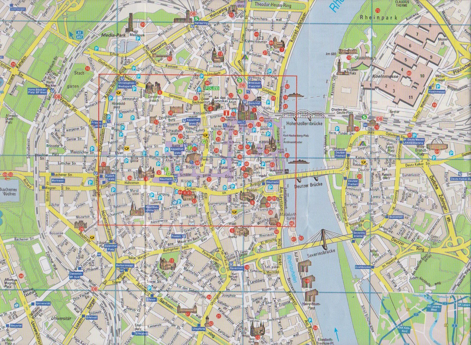 Подробная карта Дюссельдорфа с улицами, номерами домов, районами. Карта Дюссельдорфа на русском языке онлайн Карта Дюссельдорфа с достопримечательностями на русском языке