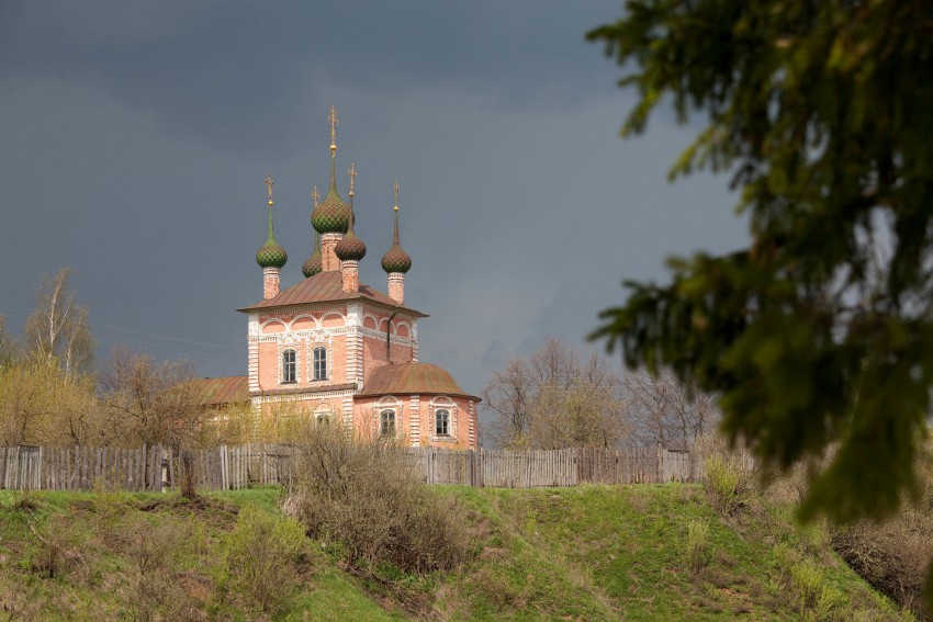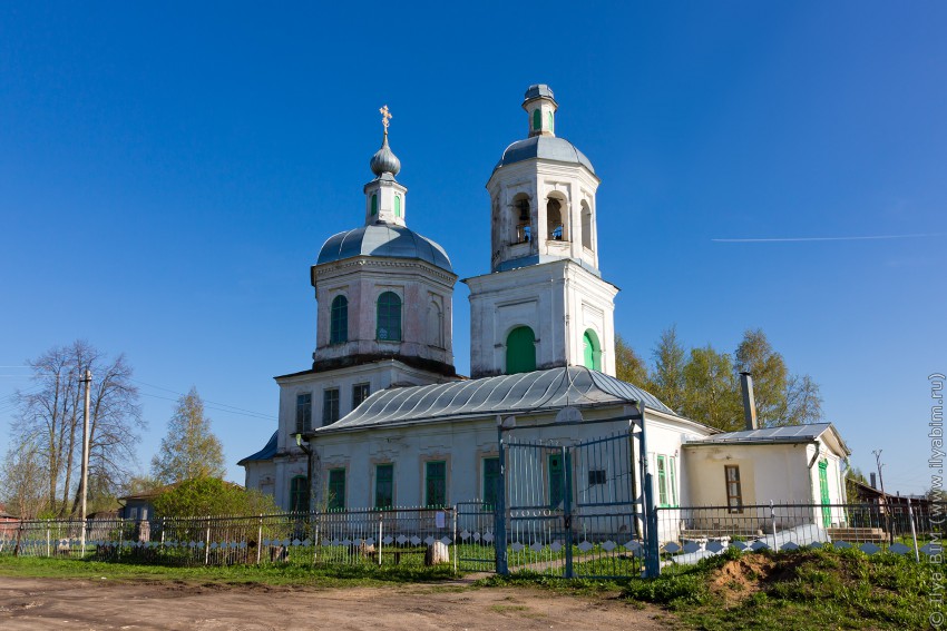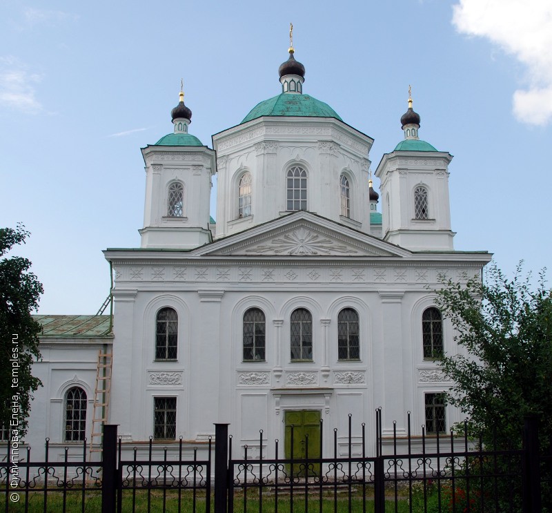 В 1853 г. пятиглавая церковь была увеличена за счёт новой трапезной. Тогда же выстроена колокольня с круглым столпообразным верхом. В советское время сильно пострадала.